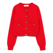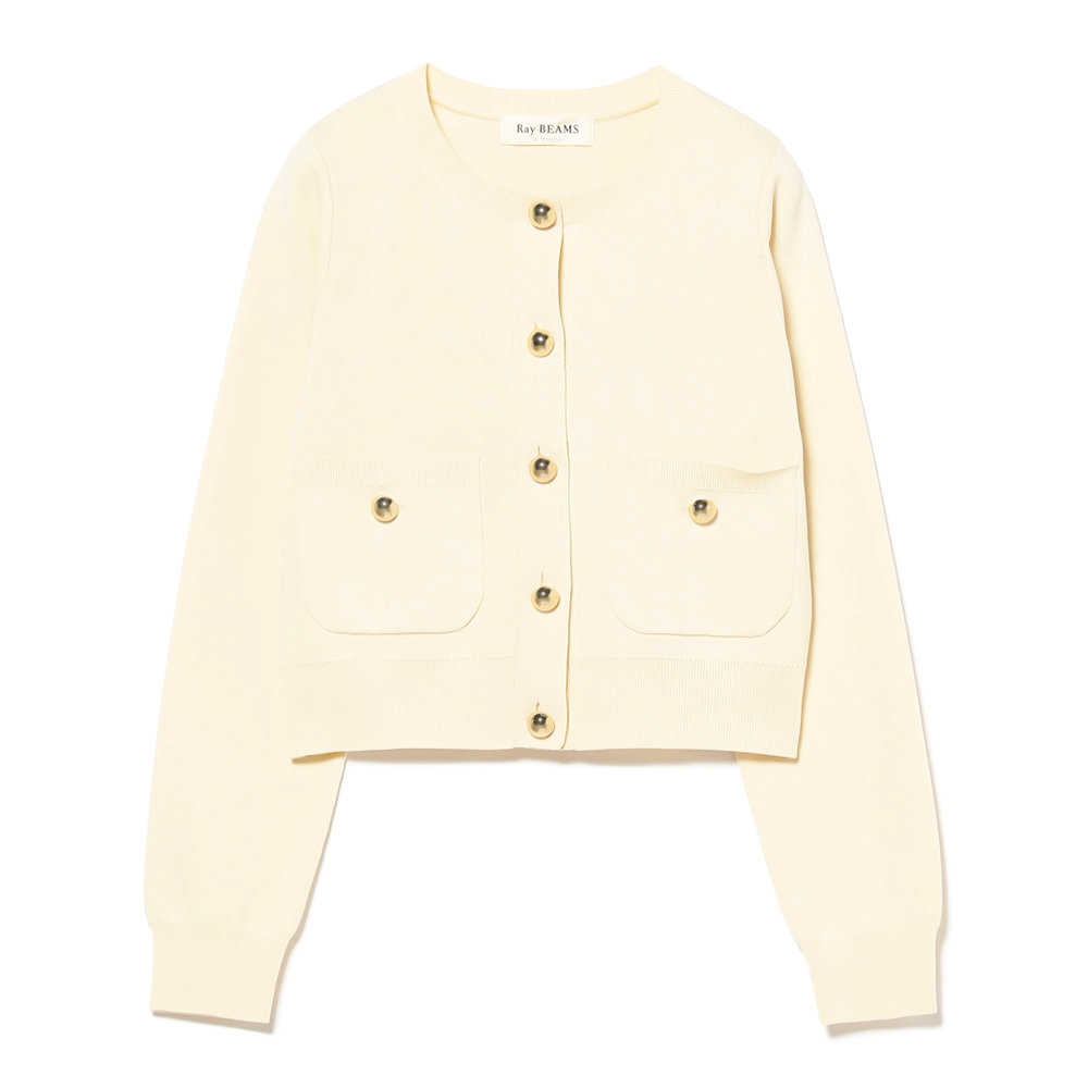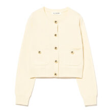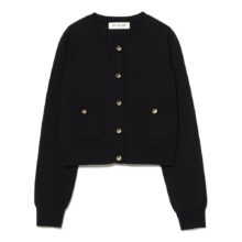 | 高機能繊維「SOLOTEX」を使用。 ソフトで軽やかなストレッチ性、優れた形態回復性、高い耐久性を持つ サステナブルな素材です。 大ぶりのメタルボタンがアクセントになった、クルーネックカーディガン。 程よいコンパクトなサイズ感で、トレンド感のあるシルエットを叶えます。 膨らみのある糸を総針で編むことで、軽さがありつつも美しいフォルムに 仕上げています。 |
